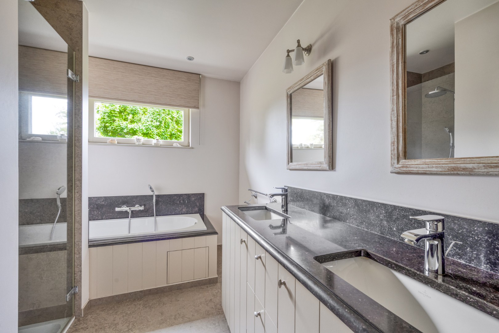 Via de nachthal bereiken we een apart toilet, de praktische garage/berging (met plaats voor 2 wagens), 3 slaapkamers en een badkamer met inloopdouche, ligbad en dubbele wastafel met opbergruimte.